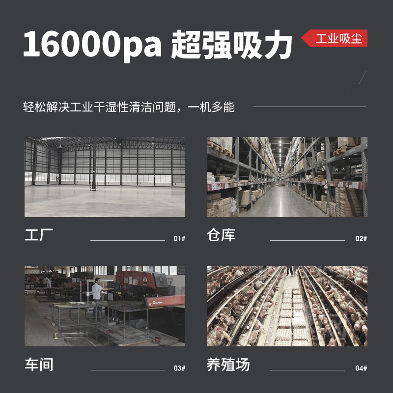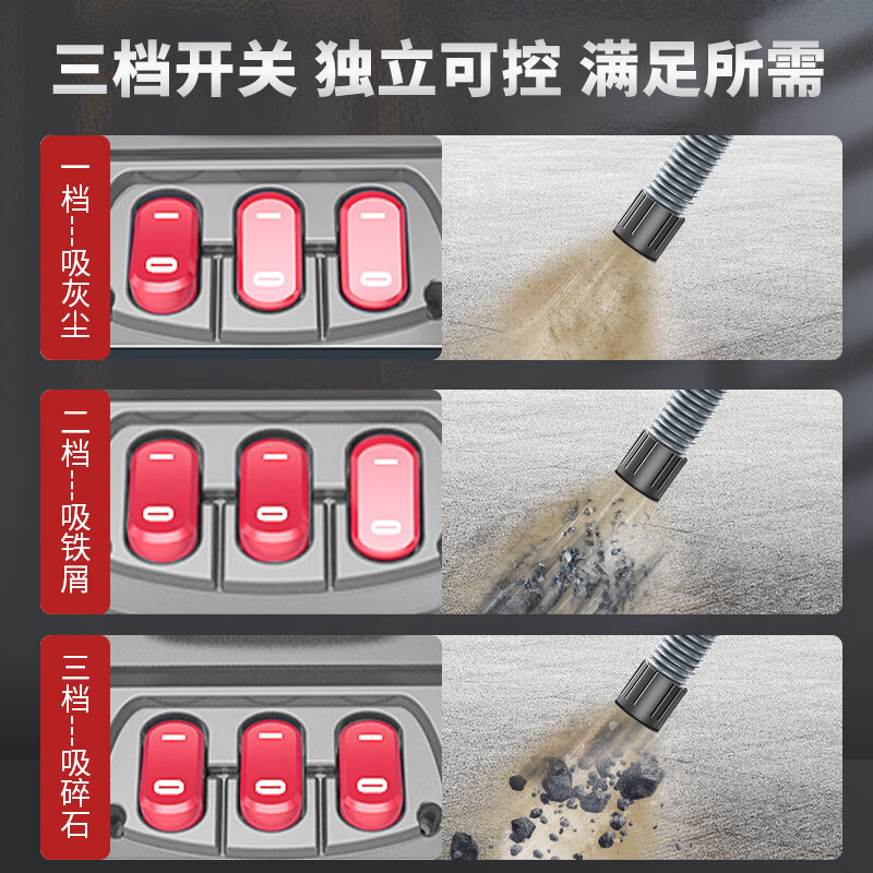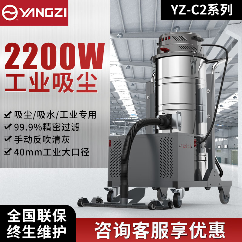 2200W工業吸塵器,多效吸塵/改變傳統清潔/無線潔凈,分離式桶身使用更便捷,聚脂釬維覆膜濾芯,過濾精度可達1微米,過濾效果達到百分之99.9%以上