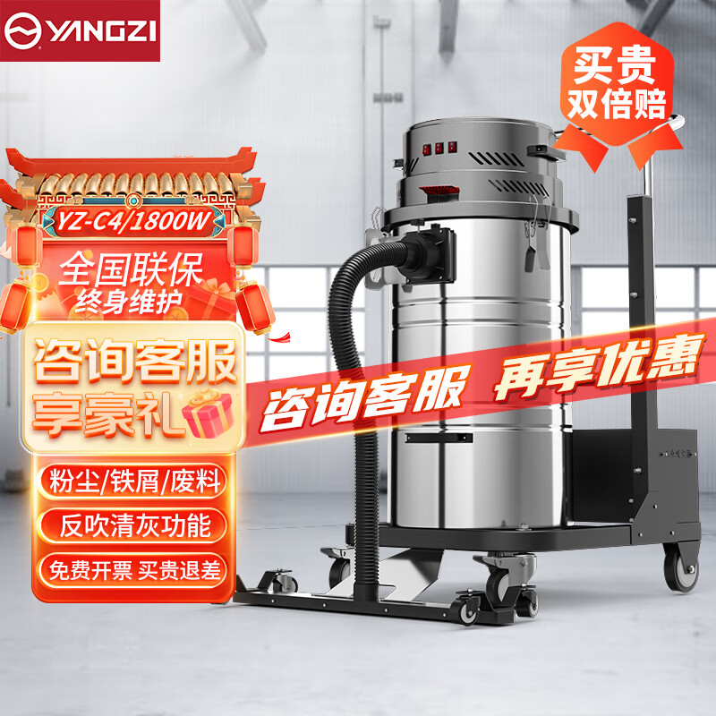 揚子吸塵器YZ-C4,1800W大功率強勁吸力輕松清潔,三電機三檔吸力調節,40MM大口徑吸塵,各種工業垃圾輕松搞定。