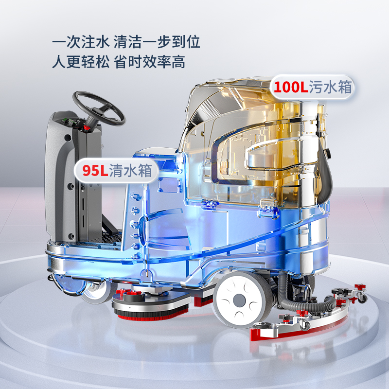 揚(yáng)子X6工廠駕駛式洗地機(jī)設(shè)備將吸水電機(jī)安裝在了水箱蓋上,可以實(shí)現(xiàn)90旋轉(zhuǎn),避免了安裝在底部不好維護(hù)的問題,也降低了使用中的噪音。洗地機(jī)采用弧形吸水扒,解決了有些產(chǎn)品吸水