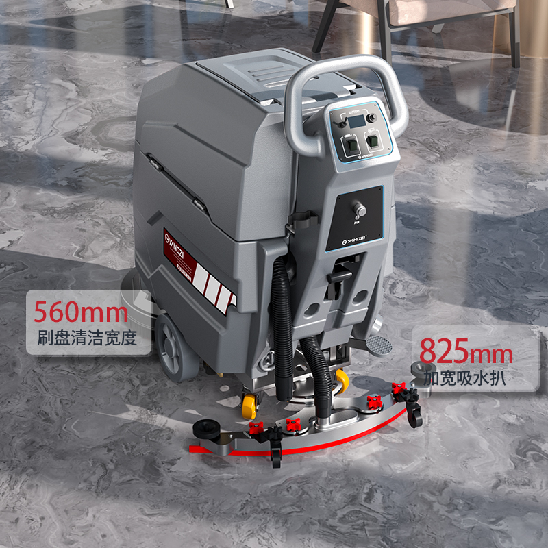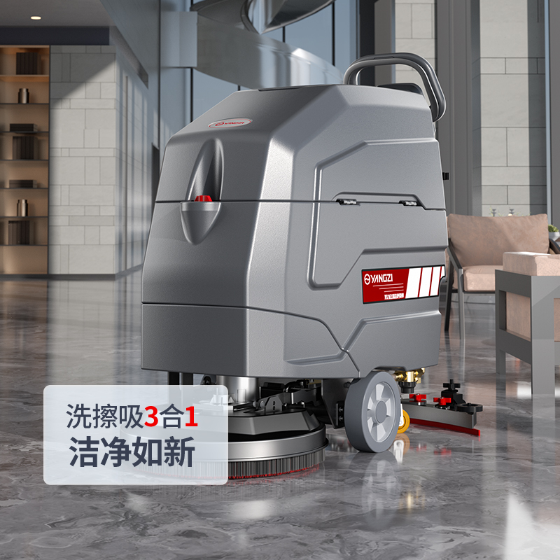 揚子X4 手推式洗地機使用聚氨酯輪胎,防腐抗酸,耐磨防滑;配備大容量水箱,不需要頻繁加水;強勁吸水電機,3S吸干地面,清潔效率更高。能夠滿足多種地面材質的清洗需求,實現高速轉動清掃,清潔深層油污,工作效率更高。